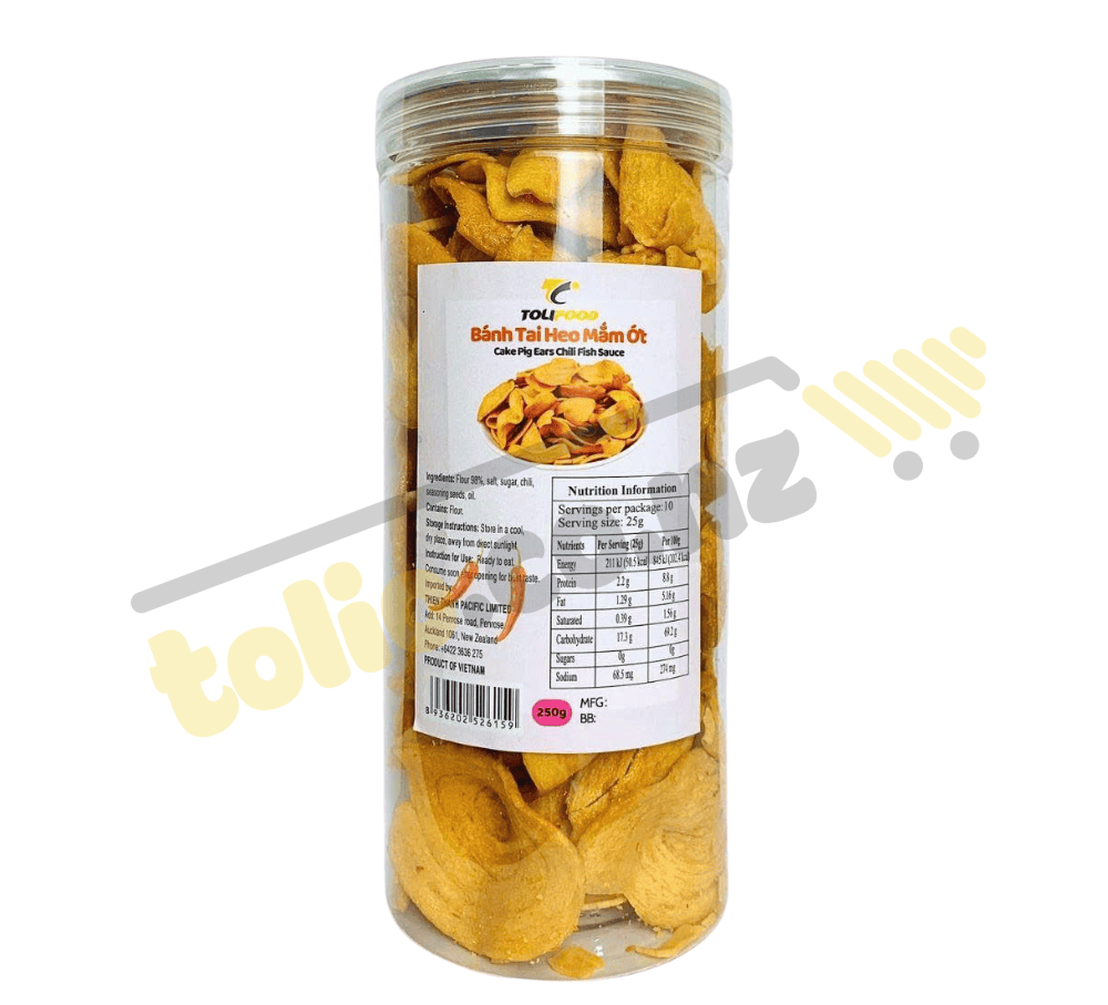 Viettin Mart pork ear cake with fish sauce 250g is a snack cake that has been associated with many people with ingredients including flour, eggs, butter, milk, fish sauce, chili, etc. The cake is in the form of thin, round slices, shaped like a pig's ear, Crispy, greasy, delicious taste.
