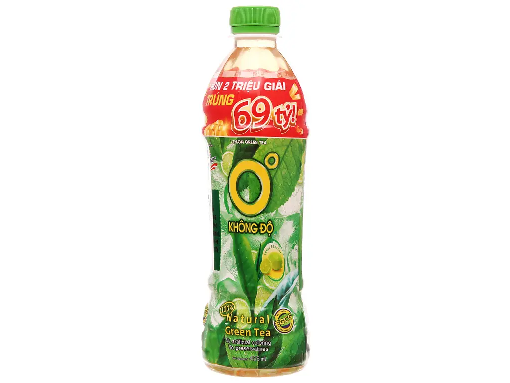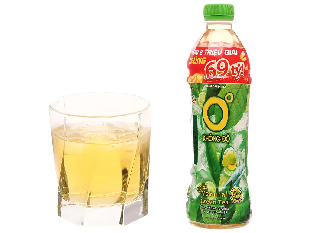 - Trà xanh Không độ vị chanh 455ml là sự kết hợp hài hòa, tươi mát giữa vị trà xanh chát dịu từ vùng đất Thái Nguyên và vị chanh tươi chua vừa tạo nên điểm nhấn, cùng vị ngọt nhẹ nhàng không gắt, mang đến cho bạn sản phẩm giải khát tuyệt vời những ngày nóng bức.