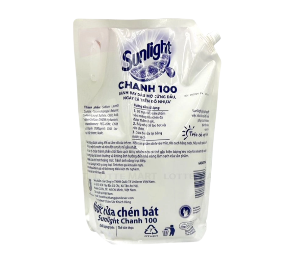 Nước rửa chén Sunlight chanh 100 túi 3.1kg với công nghệ xả bọt nhanh mang lại khả năng đánh bay dầu mỡ hiệu quả hơn, không bám bọt. Nước rửa chén Sunlight chanh 100 sử dụng công nghệ sạch bẩn siêu tốc, giúp rửa sạch dầu mỡ cả trên đồ nhựa và dịu nhẹ dịu với da tay, an toàn cho người dùng.