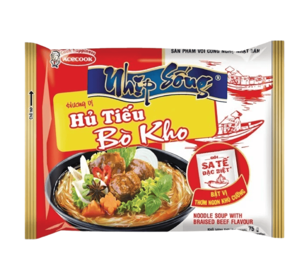 Hủ tiếu bò kho Nhịp Sống Acecook 70g là sản phẩm hủ tiếu ăn liền của thương hiệu hủ tiếu Nhịp sống với hương vị bò kho đậm đà thấm đều trong từng sợi hủ tiếu dai ngon cực đã cùng mùi hương hấp dẫn lôi cuốn không thể chối từ, đem lại bữa ăn cực tiện lợi và thơm ngon