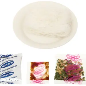 - Cho vắt miến và các gói gia vị vào tô. Chế khoảng 2 cốc (400ml) nước sôi vào, đậy nắp lại trong 3 phút. Mở nắp, trộn đều là dùng được ngay.