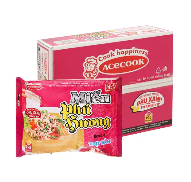 Là sản phẩm miến ăn liền tiện cho cho những ngày bận rộn cần một bữa ăn nhanh gọn và dinh dưỡng. Miến Phú Hương thịt bằm gói 55g với sợi miến dai đặc biệt được bổ sung thêm tinh bột đậu xanh cùng nước súp Phú Hương vị thịt bằm đậm đà cực quyến rũ hấp dẫn không thể chối từ