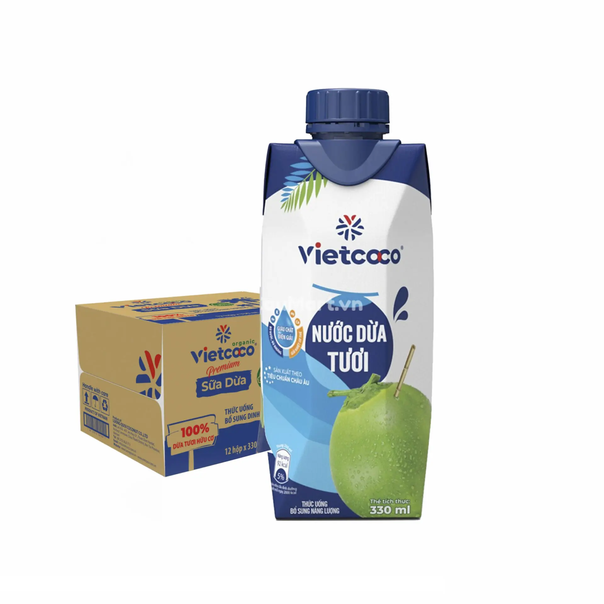 Thùng 12 hộp nước dừa tươi Vietcoco 330 ml được sản xuất từ 100% nước dừa tươi thiên nhiên, xử lý bằng công nghệ UHT tiên tiến nhất hiện nay. Nên có thể giữ được hoàn toàn các dưỡng chất và hương vị tự nhiên.